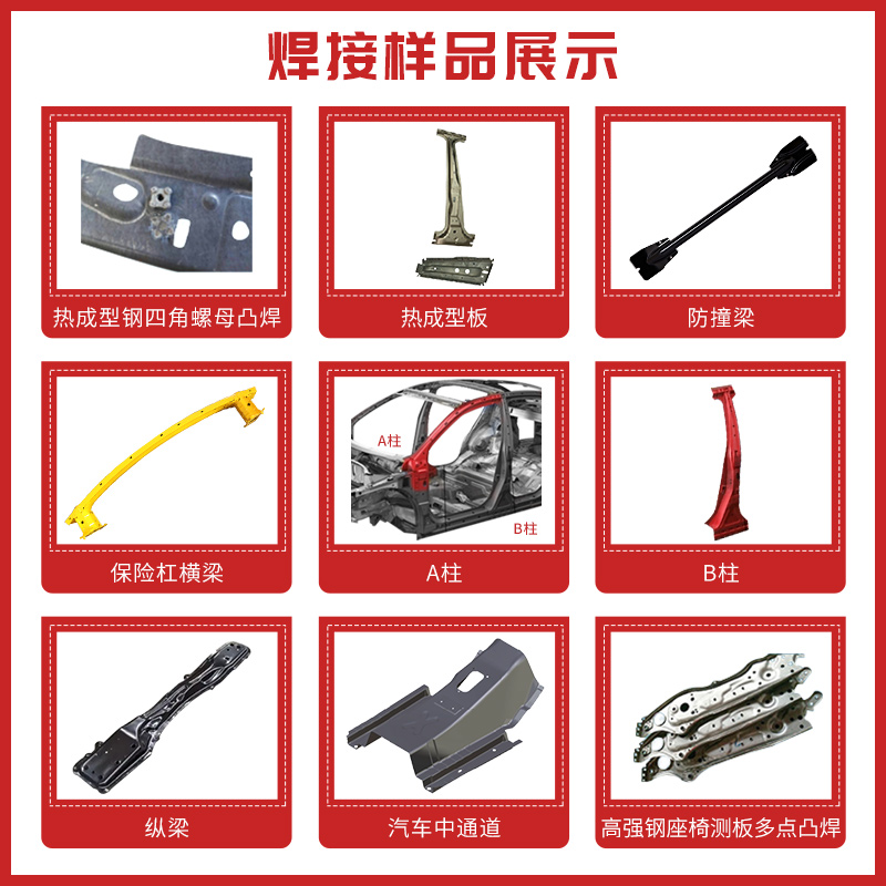 电容储能点凸焊机广泛用于镀锌板材、热成型板、高强度刚、低碳钢、不锈钢、铝、铜、合金的焊接等